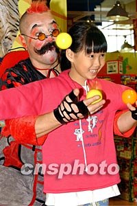來自俄羅斯的莫斯科馬戲團(tuán)十二月十六日在香港舉行演出發(fā)布會,該團(tuán)將在香港連續(xù)進(jìn)行為期數(shù)月的演出活動,全新的馬戲節(jié)目為香港觀眾帶來歡樂、刺激的新感受。圖為馬戲團(tuán)小丑指導(dǎo)小朋友練雜耍。中新社記者:錢興強(qiáng)