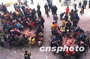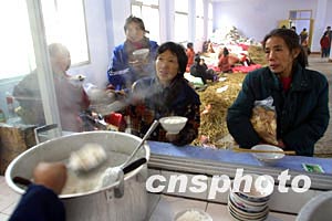 十二月二十三日二十二點十五分,位于重慶市開縣境內(nèi)的川東北氣礦發(fā)生天然氣井噴事故。二十五日上午,重慶敦好鎮(zhèn)臨時救助站為災(zāi)民準備了稀粥和餅干充饑。作者:重晚