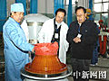 圖:鄭全寶、李占奎查看火箭上面級發(fā)動機(jī)(12月30日 03:47)