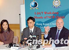 香港警方及國際刑警組織秘書處于元月十三日在港聯(lián)合舉辦“國際刑警全球聯(lián)絡(luò)系統(tǒng)I-24/7”訓(xùn)練課程及工作坊開幕儀式,該系統(tǒng)為國際刑警各分局進行了技術(shù)革新,提供一個更加安全有效,并且更符合成本效益的通訊系統(tǒng),以供亞洲地區(qū)中心局的警務(wù)人員參加。圖為國際刑警組織秘書處負責(zé)有關(guān)聯(lián)絡(luò)系統(tǒng)的主管Stanley morris(右一)在儀式上向傳媒介紹有關(guān)情況。作者:錢興強