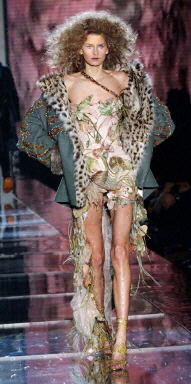 1月11日,2004/2005年意大利米蘭秋冬時裝展開場,本次時裝展將在本月15日結束。圖為模特展示設計師Roberto Cavalli的作品。