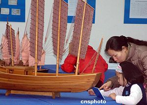 “紀(jì)念鄭和下西洋600周年仿真航模展覽”一月十七日在蘇州吳作人藝術(shù)館展出。展覽共展出了近四十件模型,包括仿鄭和下西洋船隊模型,各種現(xiàn)代海船、艦艇模型以及圖片資料吸引了前來參觀的中小學(xué)生。作者:蔣振江