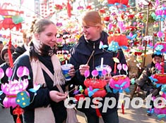 一月二十七日(正月初六)陽(yáng)光明媚,南京夫子廟燈卉大市場(chǎng)異;鸨。在南京過(guò)“中國(guó)年”的德國(guó)留學(xué)生任寧寧和好友相約,利用假日逛起了燈卉大市場(chǎng),選購(gòu)中意的花燈,她們邊走邊交流在中國(guó)過(guò)年的感受。作者:丁東升
