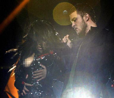美國歌手珍妮-杰克遜與賈斯汀在美式足球超級杯大賽中場演出時公然露胸引發(fā)軒然大波,珍妮-杰克遜當(dāng)?shù)貢r間2日晚上對媒體發(fā)表道歉聲明。她表示,撕扯上衣的點子是總彩排結(jié)束后才臨時決定的,想不到正式上場時擦槍走火而讓原本預(yù)期的演出效果走樣。圖為珍妮·杰克遜與布蘭妮的前男友賈斯汀一起演唱。