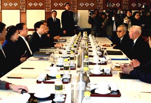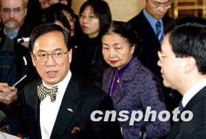 中新網(wǎng)2月10日電 香港政務(wù)司長曾蔭權(quán)率領(lǐng)的政制發(fā)展專責(zé)小組,今早在北京與全國人大法制工作委員會(huì)副主任李飛會(huì)面。