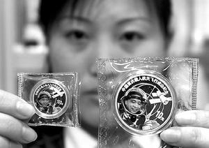 中新網(wǎng)2月11日電 據(jù)《北京青年報(bào)》報(bào)道,由中國人民銀行發(fā)行的中國首次載人航天飛行成功紀(jì)念金幣、銀幣昨天上午在京上市。楊利偉形象首次進(jìn)了金銀紀(jì)念幣。