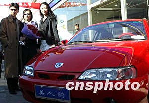 二月十四日是西方情人節(jié),中國吉利集團北京經銷店分別向前來提取紅色美人豹跑車的五對情侶、夫婦贈送了99朵紅玫瑰,以示節(jié)日的祝福,2003年環(huán)球中國小姐吳薇(右)也來現(xiàn)場助興。中新社記者:趙振清