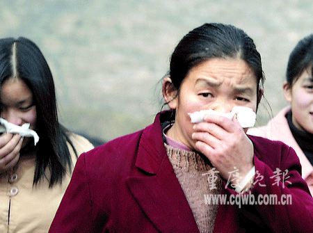 昨日9時(shí)許,重慶天原化工總廠發(fā)生泄漏事故,據(jù)調(diào)查小組分析后認(rèn)為,泄漏的是氯化氫氣體,污染了大水井合作社與雞心石合作社,附近居民先后出現(xiàn)流淚、咳嗽等現(xiàn)象。苗兒石小學(xué)500多名師生當(dāng)時(shí)正在上興趣課,9時(shí)30分左右,一種霧狀刺鼻氣體開始在全校彌漫開來,并幾乎將全校籠罩,“突然來的氣體熏得睜不開眼了。老師忙喊快走快走!”補(bǔ)課的學(xué)生緊急疏散。該校三年級(jí)一位姓張的小朋友說,跑出教室才發(fā)現(xiàn),全校的同學(xué)都捂著鼻子往家跑了。