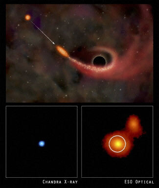 歐洲和美國天文學家18日宣布,他們借助太空望遠鏡在一個距地球7億光年的星系中觀測到了耀眼的X射線爆發(fā)?茖W家相信,這是被位于該星系中央的黑洞所吞噬的一顆恒星發(fā)出的“臨終呼叫”。這是科學家首次找到超大質(zhì)量黑洞撕裂恒星的強有力的證據(jù)。