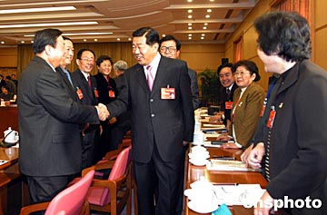 全國政協(xié)主席賈慶林今天來到他所在的北京代表團(tuán),與代表們共同審議溫家寶總理所作的《政府工作報(bào)告》。