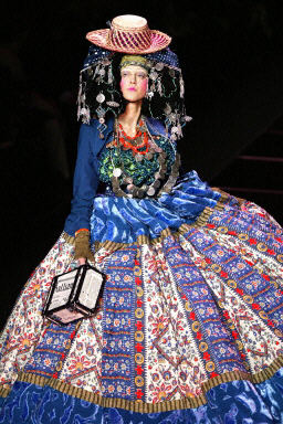3月6日,在巴黎2004/2005秋冬時裝周上,模特展示設(shè)計師John Galliano的另類時裝。