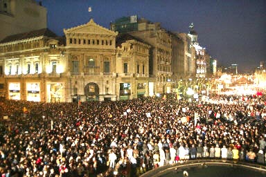 3月12日晚,西班牙上千萬(wàn)人走上街頭,強(qiáng)烈抗議11日在馬德里發(fā)生的系列恐怖爆炸事件。西班牙警方說(shuō),游行人數(shù)創(chuàng)下了該國(guó)歷史最高紀(jì)錄。