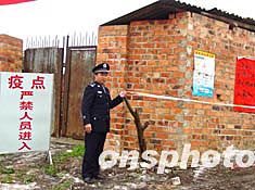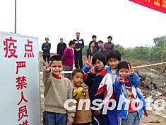 閉家紅、李志基夫婦牽著年幼的兒子,今天上午十時(shí)滿臉笑容走出了警方設(shè)置的警戒線,三十九天來(lái),他們一家和其他六戶養(yǎng)殖戶二十二人一直被隔離在廣西南寧市興寧區(qū)北湖園藝場(chǎng)的一個(gè)小山丘上,因?yàn)樵谒麄兙幼〉倪@個(gè)山丘上發(fā)生了高致病性禽流感疫情。
