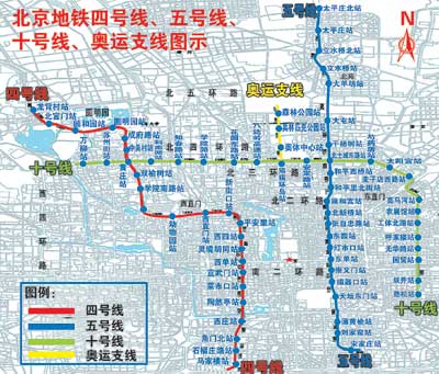 據(jù)報(bào)道,北京地鐵四號(hào)線全長(zhǎng)28.16公里,共設(shè)24座車站,南起豐臺(tái)馬家樓,北至海淀區(qū)龍背村。北京地鐵五號(hào)線全長(zhǎng)27.6公里,共設(shè)22座車站,南起豐臺(tái)區(qū)宋家莊,北至昌平區(qū)北太平村。北京地鐵十號(hào)線全長(zhǎng)24.55公里,共設(shè)22座車站,南起朝陽(yáng)區(qū)勁松,西至海淀區(qū)萬(wàn)柳。奧運(yùn)支線全長(zhǎng)5.91公里,共設(shè)4座車站,南起熊貓環(huán)島,北至奧體森林公園。