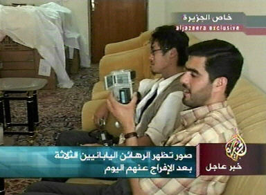 中新網(wǎng)4月15日電 據(jù)共同社引述卡塔爾半島電視臺(tái)15日?qǐng)?bào)道,伊拉克武裝組織扣押的3名日本人質(zhì)被釋放。