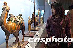 為了弘揚鄭振鐸先生(1898—1958)的學(xué)術(shù)思想,北京故宮博物館從鄭振鐸先生捐獻給故宮博物院上至兩漢,下至宋代,總計六百余件的陶俑中遴選出一百三十六件舉辦《鄭振鐸捐獻陶俑特展》。圖中展示的是國家一級文物陶俑《唐三彩駱駝》,該展覽將于四月二十八日正式舉行。中新社記者:張勤