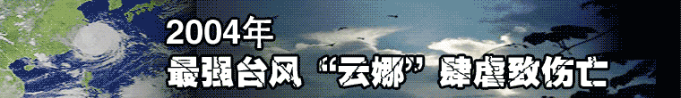 | 二○○四年第十四號(hào)臺(tái)風(fēng)“云娜”于八月十二日晚間八時(shí)許在浙江臺(tái)州溫嶺石塘鎮(zhèn)登陸。這是這一年以來(lái)四個(gè)在中國(guó)沿海登陸的熱帶風(fēng)暴中強(qiáng)度最強(qiáng)的一個(gè),也是自一九九七年以來(lái)對(duì)浙江影響最嚴(yán)重的臺(tái)風(fēng)。截至登陸當(dāng)晚二 |