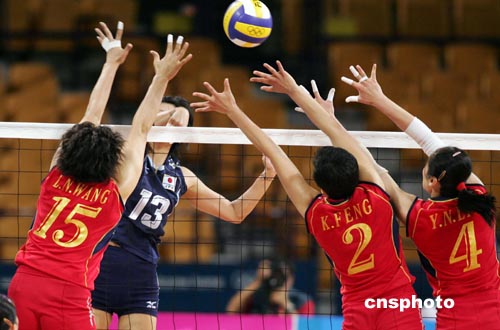當?shù)貢r間八月二十四日,中國女排在雅典奧運會上以三比零戰(zhàn)勝日本隊。中新社記者:毛建軍