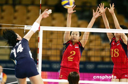 圖為中國隊員攔網(wǎng)如長城般難以突破。