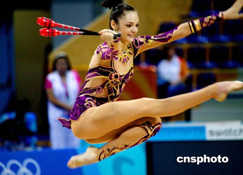 雅典當?shù)貢r間八月二十五日,俄羅斯藝術體操個人全能選手KABAEVA進行奧運會賽前排練。中新社記者:王瑤