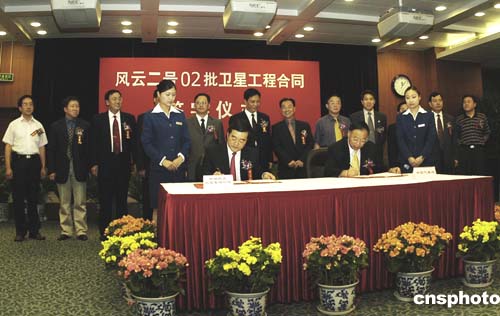 合同簽字儀式上,中國(guó)氣象局和中國(guó)航天科技集團(tuán)公司、中國(guó)衛(wèi)星發(fā)射測(cè)控系統(tǒng)部簽署了《“風(fēng)云二號(hào)”0二批衛(wèi)星、運(yùn)載火箭研制生產(chǎn)合同》及《“風(fēng)云二號(hào)”0二批衛(wèi)星發(fā)射測(cè)控合同》。