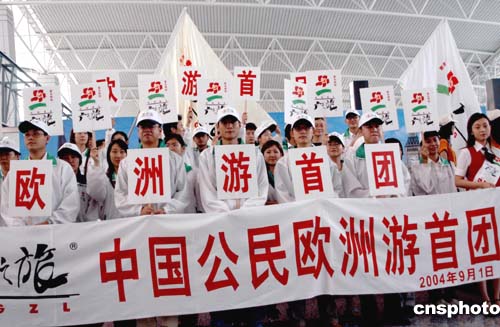 九月一日,首批準(zhǔn)備出發(fā)游歐洲的廣州游客匯集廣州新白云機場。歐洲游今日起全面開放,有資質(zhì)的國際旅行社將獲批在今日后,可以向總共29個歐洲國家開展中國公民自費組團出境游業(yè)務(wù),中國大陸即將掀起歐洲旅游熱。作者:劉衛(wèi)勇