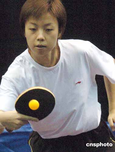為歡迎國(guó)家奧運(yùn)金牌代表團(tuán)訪港,九月八日香港舉行“中國(guó)人的驕傲--奧運(yùn)金牌精英顯風(fēng)采”奧運(yùn)金牌羽毛球及乒乓球表演。圖為奧運(yùn)乒乓球女子單打冠軍張怡寧示范表演。作者:錢興強(qiáng)