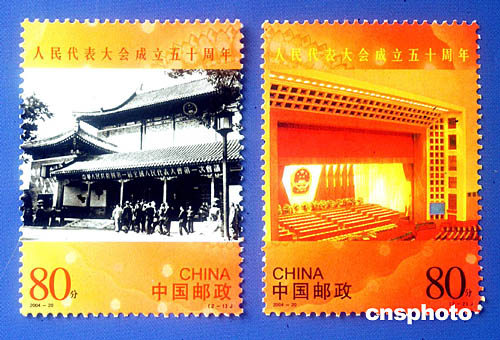 中新社北京九月十三日電中華人民共和國第一屆全國人民代表大會第一次會議于一九五四年九月十五日在北京召開。為紀(jì)念人民代表大會成立五十周年,中國國家郵政局定于二00四年九月十五日發(fā)行《人民代表大會成立五十周年》紀(jì)念郵票。