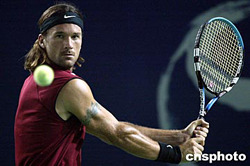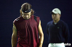 中國(guó)網(wǎng)球公開(kāi)賽男單比賽九月十五日晚在北京網(wǎng)球中心中央球場(chǎng)繼續(xù)進(jìn)行,賽會(huì)頭號(hào)種子西班牙名將莫亞以零比二不敵法國(guó)選手特松加,爆出本屆中國(guó)網(wǎng)球公開(kāi)賽最大冷門,無(wú)緣晉級(jí)下一輪。中新社記者:盛佳鵬