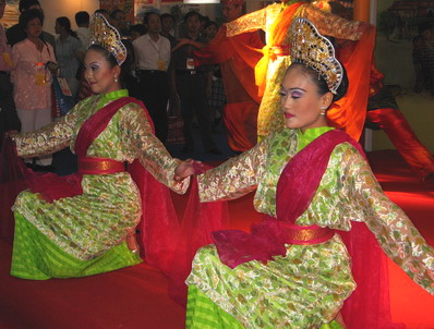 古銅色的皮膚,艷麗的民族服飾,激揚(yáng)的音樂,來自馬來西亞的姑娘小伙子們跳起了具有濃郁馬來西亞特色的舞蹈。乍一看,還以為是東南亞民族風(fēng)情表演。仔細(xì)一打量才發(fā)現(xiàn)是馬六甲州情況說明及經(jīng)貿(mào)旅游洽談會(huì)專場(chǎng)活動(dòng)。