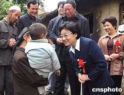 國務院僑辦副主任李海峰一行二十日來到甘肅積石山縣胡林家鄉(xiāng)、居集鎮(zhèn)深溝村、小關鄉(xiāng)等村社,連續(xù)走入十多戶農(nóng)家,逐一向他們噓寒問暖,并與他們親切交談。李海峰到群眾的新房里坐坐,也要進入舊房里看看。她鼓勵群眾們說,安居的同時還應該通過勤勞致富。