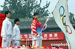 由北京市長從雅典奧運會帶回的奧運五環(huán)旗九月二十五日在第七屆北京國際旅游文化節(jié)開幕式上首次與北京市民見面,北京籍奧運冠軍羅微把奧運五環(huán)旗高高舉起走在盛裝行進表演隊伍的前面。此次旅游節(jié)將旅游與奧運主題相結(jié)合,力求打造北京奧運旅游品牌。作者:徐曦弋