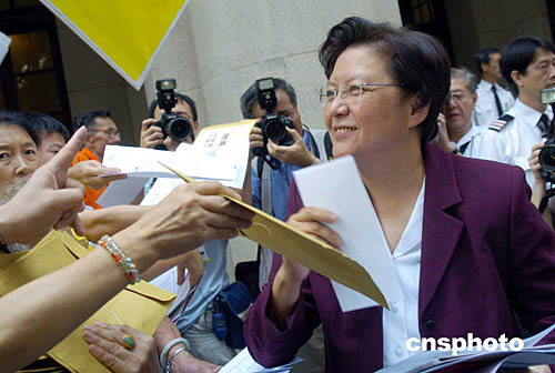 香港特區(qū)立法會于10月6日舉行首次會議,范徐麗泰當選立法會主席時表示,會繼續(xù)以無畏、無偏和無私原則,主持會議及執(zhí)行議事規(guī)則。圖為范徐麗泰在立法會外接受請愿者信件。作者:洪少葵