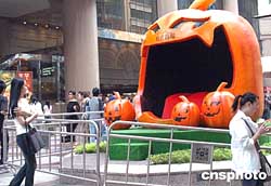 一年一度的萬圣節(jié)將臨,香港時(shí)代廣場(chǎng)裝飾一新,各種新裝飾的造型藝術(shù)作品充滿萬圣節(jié)氣氛。作者:錢興強(qiáng)