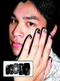 中新網(wǎng)10月18日電 男生戴耳環(huán)、配發(fā)飾早不稀奇,穿著粉色上衣的“粉紅男孩”更是當前街頭流行;而近年來讓許多年輕美眉趨之若鶩的指甲彩繪,最近也在島內(nèi)吹起男兒風,爭酷比炫較女生的美甲更為搶眼。