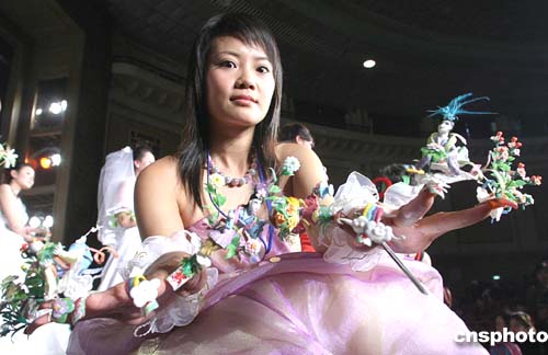 十月二十日,中國國際美容時尚周美甲冠軍大賽在北京展覽館劇場舉行,造型獨特的立體美甲令人眼花繚亂。作者:廖文靜