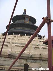 中新網(wǎng)10月21日電 北京娛樂(lè)信報(bào)報(bào)道,天壇祈年殿昨天開(kāi)工大修,此舉也拉開(kāi)了北京世界遺產(chǎn)大規(guī)模修繕的帷幕。據(jù)悉,本次大修投資2000多萬(wàn)元,是今年北京市投資最大的文物修繕項(xiàng)目。