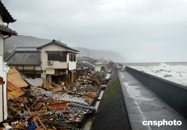 高知縣海岸邊的房屋被臺(tái)風(fēng)摧毀。