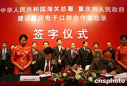 海關(guān)總署總工程師楊國勛和重慶市副市長吳家農(nóng)今天在備忘錄上簽字。這標志著重慶電子口岸建設(shè)正式啟動。