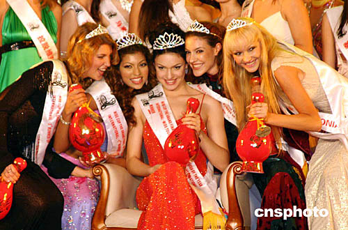 最終,從事新聞職業(yè)的亞美尼亞佳麗獲得年度皇后桂冠,新加坡佳麗、馬其頓佳麗分獲亞、季軍。多項(xiàng)單項(xiàng)獎(jiǎng)也花落各家,捷克佳麗獲得最佳旅游文化形象獎(jiǎng),中國(guó)香港佳麗獲得最佳旅游文化傳播獎(jiǎng),波黑佳麗獲得最佳友誼獎(jiǎng)、中國(guó)佳麗獲得最佳人氣獎(jiǎng),韓國(guó)佳麗則獲得最佳民族服裝獎(jiǎng)。