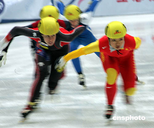 今天的比賽可謂競爭激烈、冷門迭出。世界杯第一站五百米冠軍得主、中國小將王濛由于冰刀出現(xiàn)問題而犯規(guī)被取消成績。韓國隊在這個項目上沒有一人進入半決賽。中國隊付天余和朱米樂表現(xiàn)出色,在小組賽和半決賽中過關斬將,雙雙闖入決賽圈。冠軍爭奪戰(zhàn)中,兩位中國姑娘默契配合,付天余沖在第一位拼速度,朱米樂緊隨其后并利用滑行線路的變化干擾對手,將優(yōu)勢一直保持到終點,加拿大的維森特獲得銅牌。