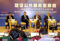 眾多政府官員、外國大使與國內外一批著名專家學者十月三十日云集?,出席正在此間舉行的中國改革國際論壇,就政府轉型相關問題進行深入探討。圖為高尚全、衛(wèi)留成、陳錦華、科勒德克(從左到右)在論壇上。作者:顧時宏