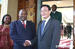 當(dāng)?shù)貢r(shí)間十月三十日下午,在肯尼亞進(jìn)行國事訪問的中國全國人大常委會(huì)委員長(zhǎng)吳邦國與肯尼亞議長(zhǎng)卡帕羅在肯尼亞議會(huì)舉行正式會(huì)談。作者:張量