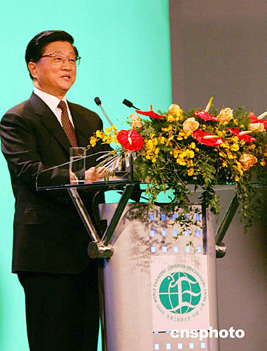 十一月三日,中共中央政治局常委、國務(wù)院副總理黃菊,在上海出席二○○四年世界工程師大會(huì)開幕式并致辭。作者:湯彥俊
