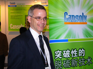 在展會上,加拿大康世富科技環(huán)保有限公司是國際上少數擁有成熟脫硫脫硝技術企業(yè)之一。該公司副總裁柯林·萊恩先生說,“康世富來了世界領先的可再生胺液脫硫技術,希望康世富技術能為中國的酸雨防治和綠色GDP助一臂之力”。他表示,與目前通用的石灰石-石膏法相比,康世富技術具有脫硫效率高(99%以上)、投資合理、綜合運營成本低、占地少、節(jié)水節(jié)能、脫硫胺液可循環(huán)使用7至10年、無二次污染等優(yōu)點。他相信,這個技術進入中國后,很快能找到合作伙伴。