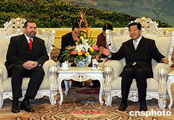 全國政協(xié)主席賈慶林,十一月十日在北京人民大會(huì)堂會(huì)見來訪的匈牙利國會(huì)副主席曼杜爾。中新社記者:毛建軍