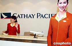 圖為國泰航空北京的工作人員在接受旅客問詢。