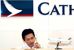 圖為國泰航空北京的工作人員在接聽問詢電話。