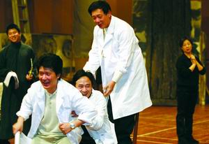 中新網(wǎng)11月23日電 據(jù)京華時(shí)報(bào)報(bào)道,昨(22)天下午,根據(jù)老舍同名短篇小說改編的話劇《開市大吉》正式投入排練。人藝劇場排練廳內(nèi),幾塊木板搭建起一個(gè)醫(yī)院門面,李光復(fù)、張永強(qiáng)、孫星身著白大褂,正為“誰當(dāng)院長”吵得臉紅脖子粗。坐在場地前方的導(dǎo)演顧威則不時(shí)站起身,走到演員中間指導(dǎo)建議。顧威表示將力爭再現(xiàn)“原汁原味”的老舍式幽默。