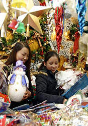 圣誕節(jié)日益臨近,形形色色的圣誕飾品在上海市場熱銷。作者:潘索菲